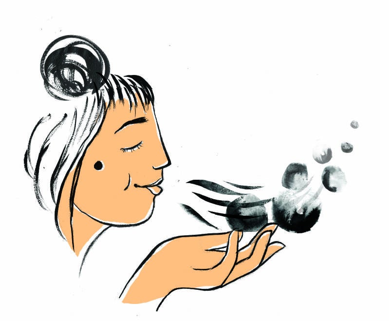 De gehele insteek van de illustraties was om beeld te vormen met een losse toets. Dit doe ik graag met Oost-Indische inkt, één van mijn favoriete materialen. Hieronder vind je ze allemaal: Een open cirkel, lotusbloem. hartje in hoofd, ooievaar, warboel-hoofd, zwangere buik, achterstevoren op een paard, een baby in houding, hartje, een kindje dat met een vliegtuig speelt, een wolk, mandala, kwikstaartje, een bloem en uitgebalanceerde dieren op elkaar gestapeld. © 2019